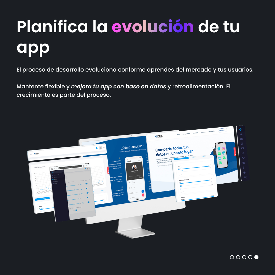 Una app no es un producto terminado, es un producto en evolución constante. Desde el inicio, es importante pensar en: